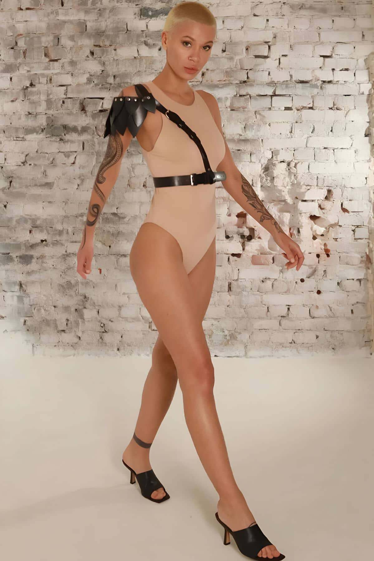 Stylish Single Shoulder Leather Belt with Leaf Detail on the Shoulder