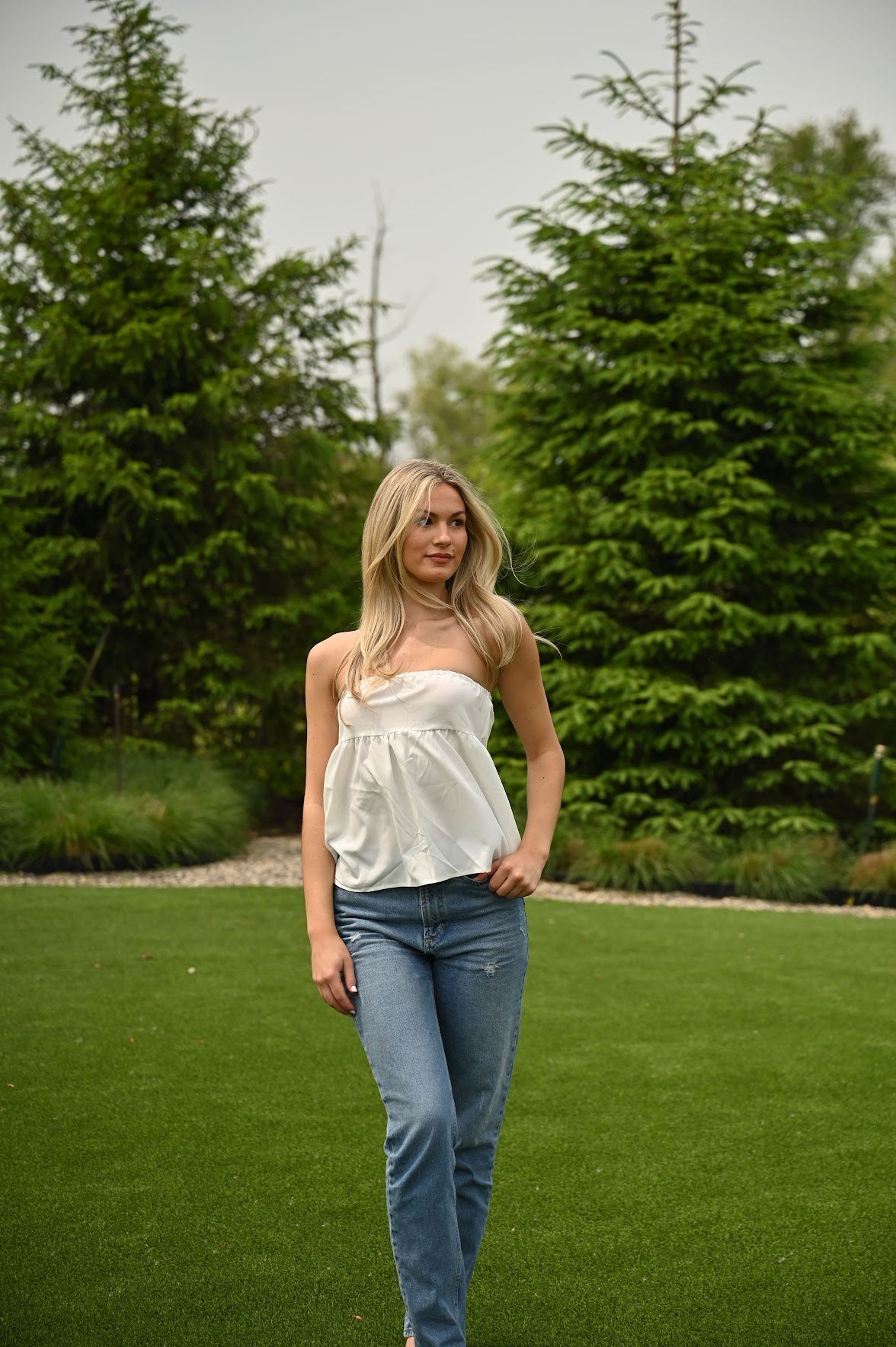 Elevate your style with this chic strapless top, available in a variety of colors. Featuring a flattering, gathered waist and a flowing, layered design, this top is perfect for both casual outings and evening events. Pair it with jeans, skirts, or shorts for a versatile and effortlessly stylish look.