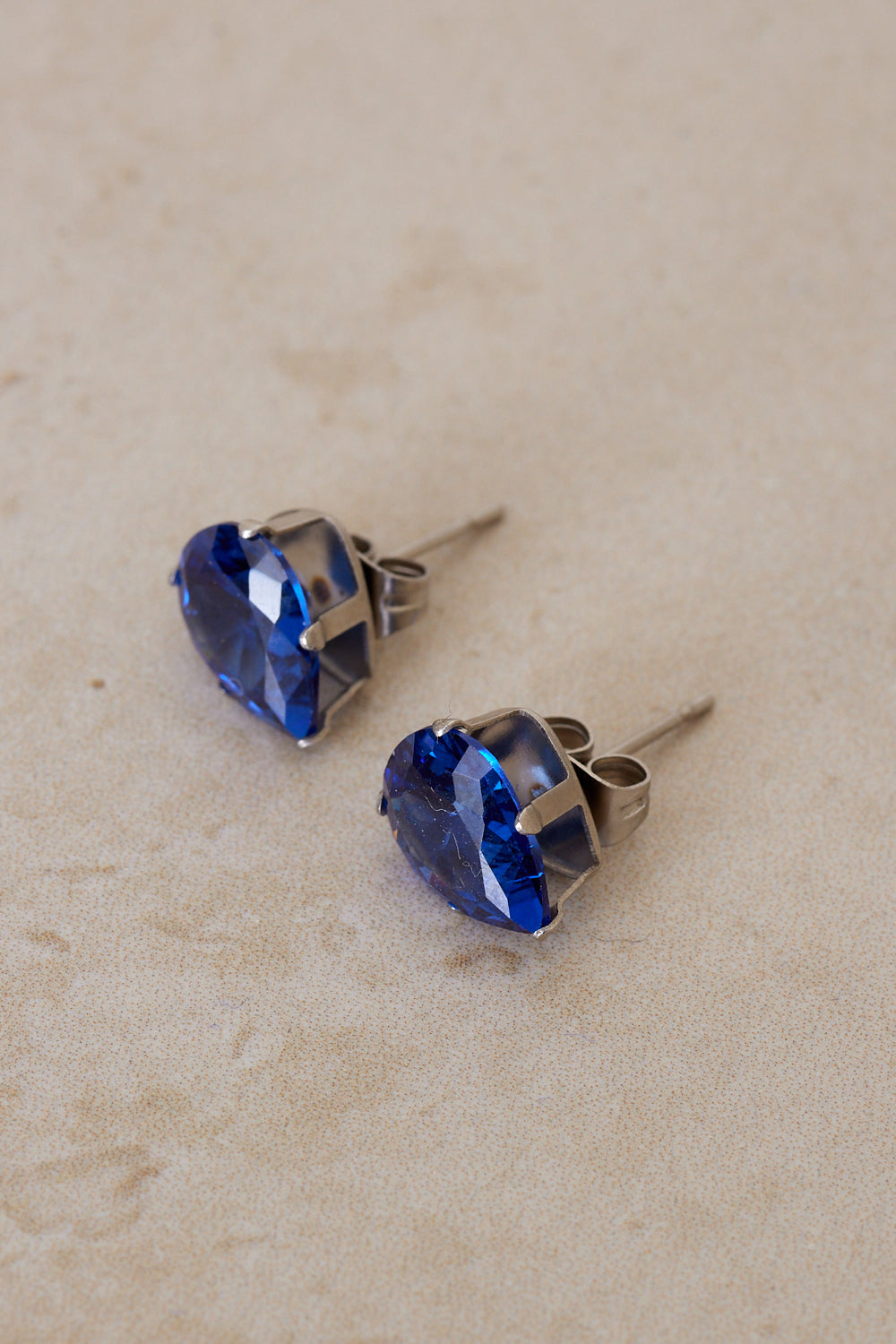 These stunning earrings feature vibrant sapphire-blue stones in a teardrop cut, held in place by silver-tone prongs for a secure fit. The sparkling blue stones catch the light beautifully, making them perfect for both day and evening wear. These earrings come with simple stud backs, ensuring comfort and ease of wear, while adding a sophisticated pop of colour to any outfit.