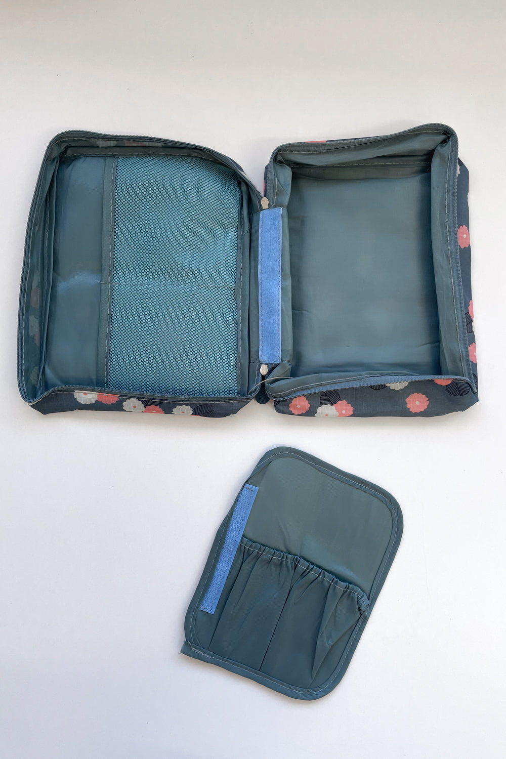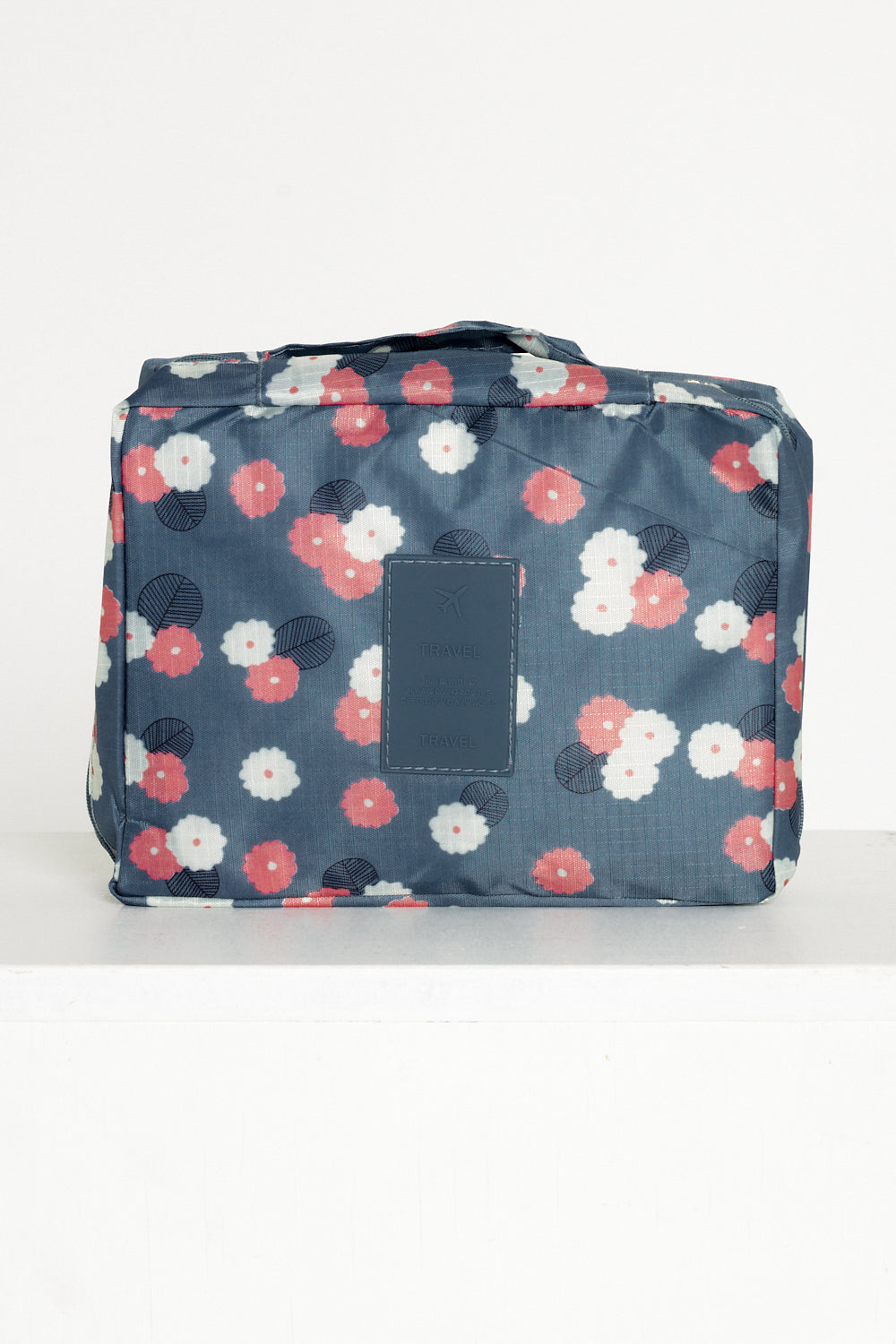 Travel Toiletry Bag - Steel Blue/Pink Blossom