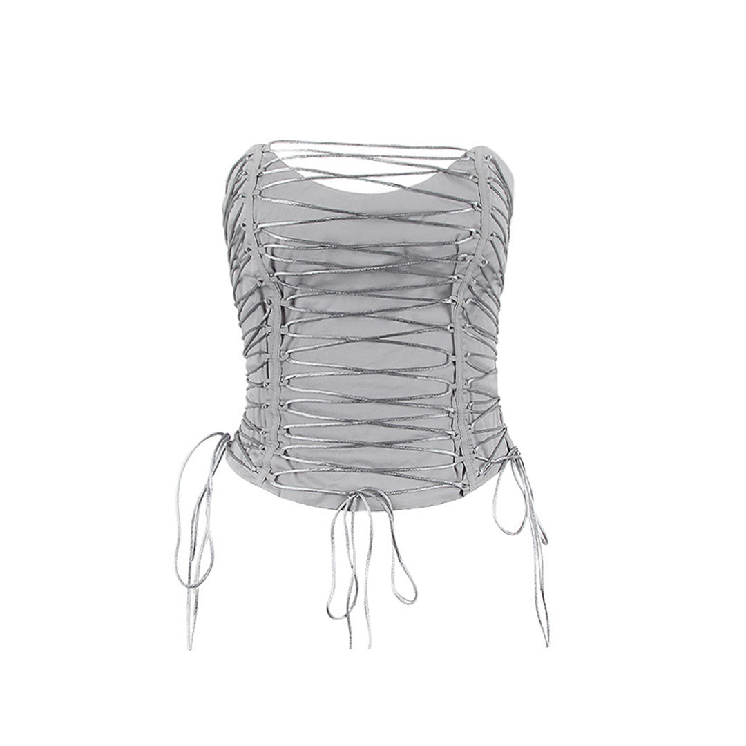 Trendy Lace Up Sweetheart Neck Sleeveless Tube Crop Top - Gray