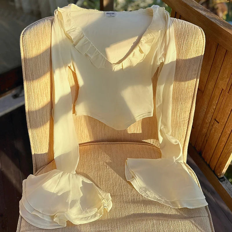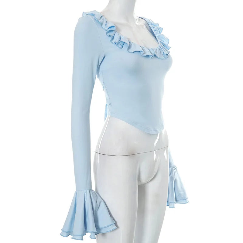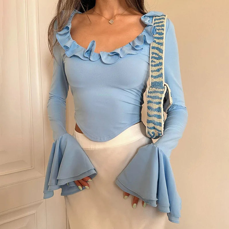 Experience a touch of femininity and style with our Tried To Remind Her T-Shirt. Made from a soft and comfortable blend of polyester and spandex, its ruffled design and flared sleeves add a playful twist to any outfit. Short in length for a flattering silhouette. Elevate your wardrobe with this must-have piece.