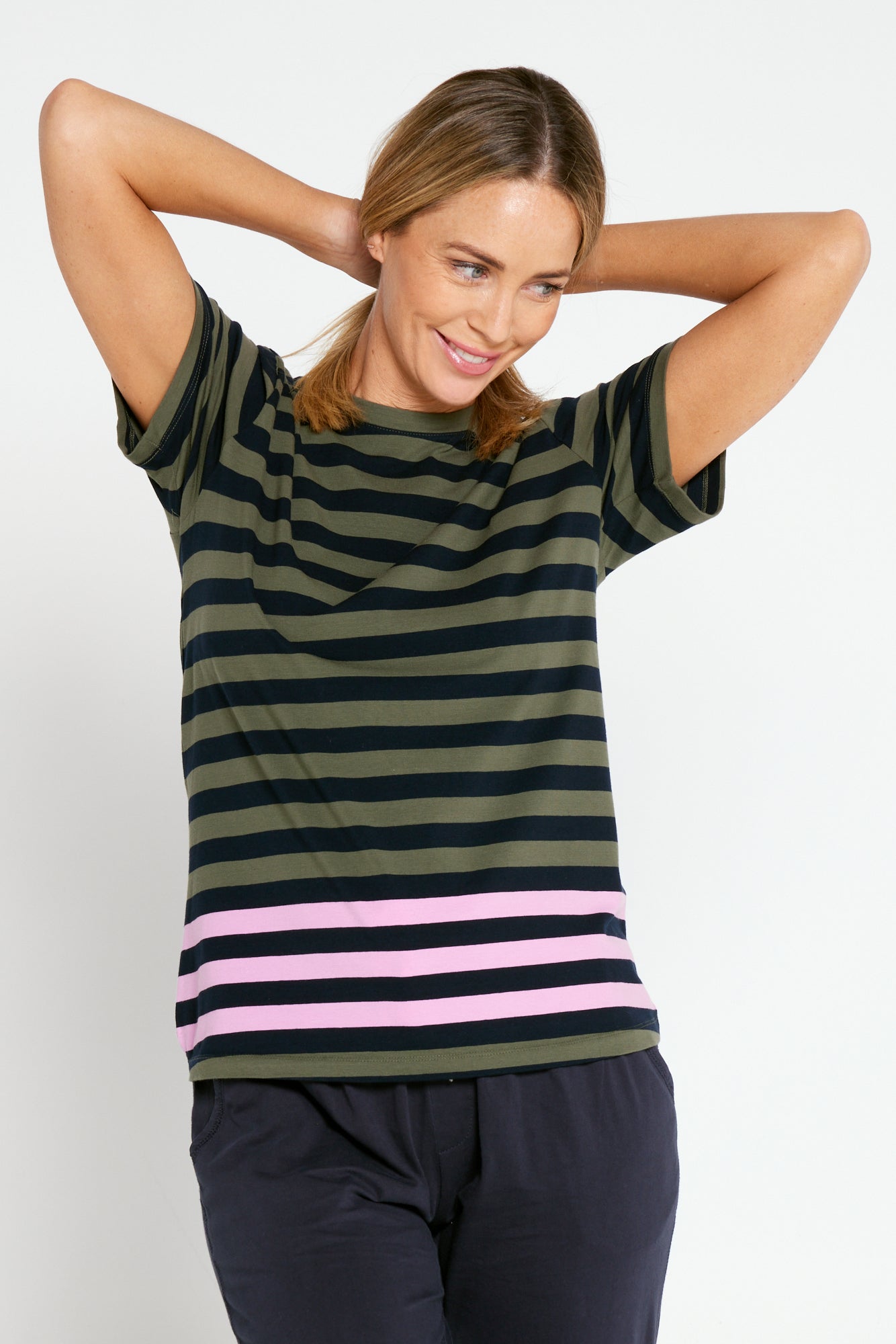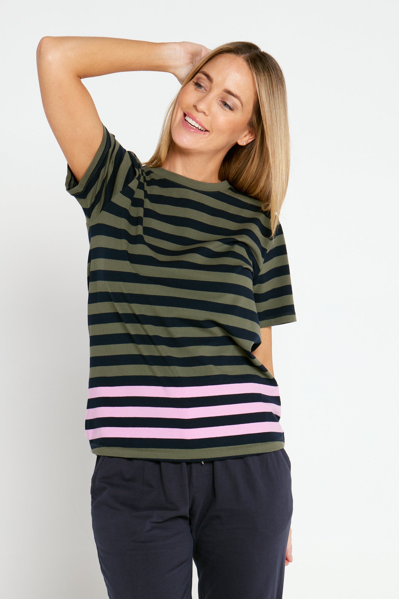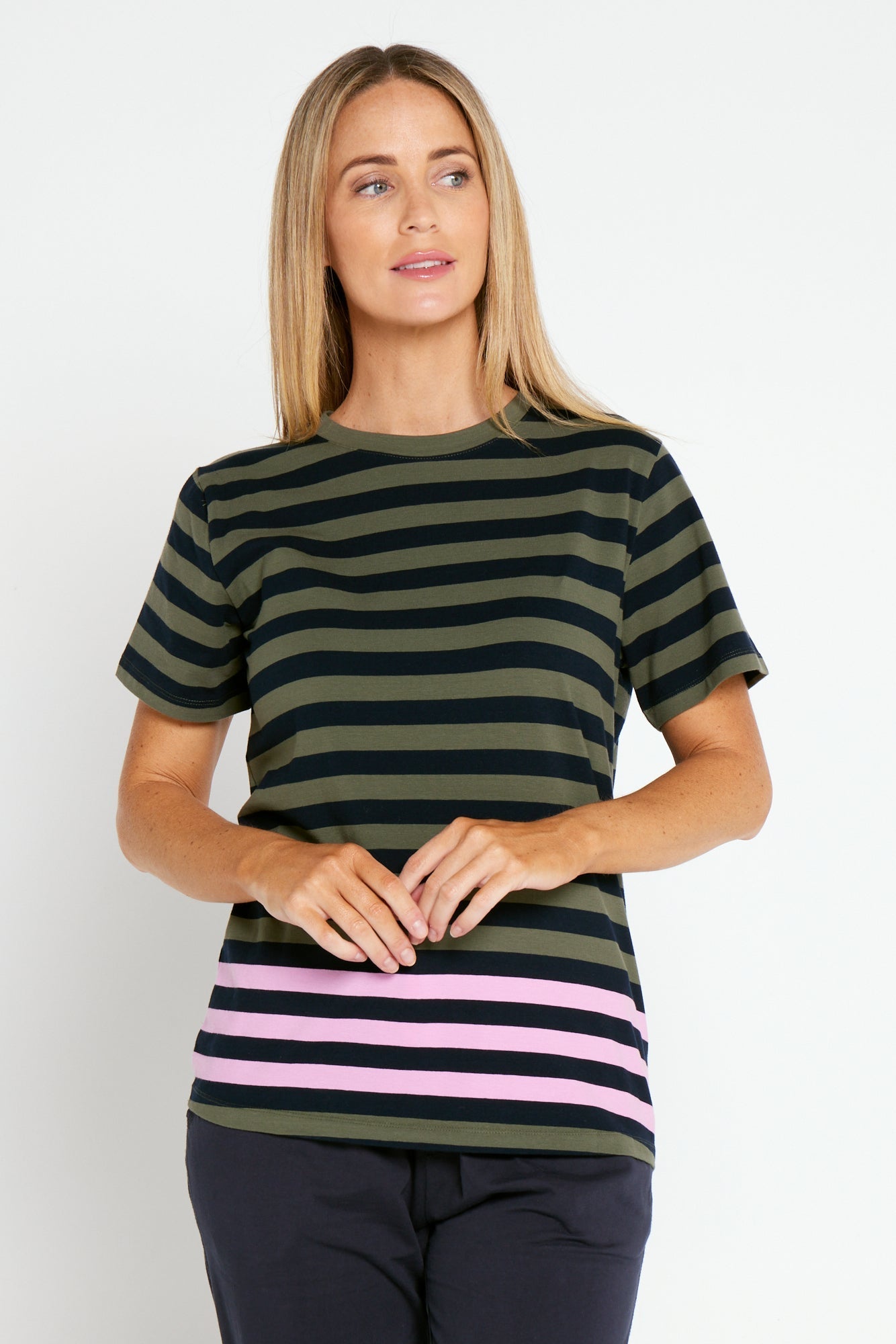 Turn Back Short Sleeve Tee - Navy/Khaki Stripe
