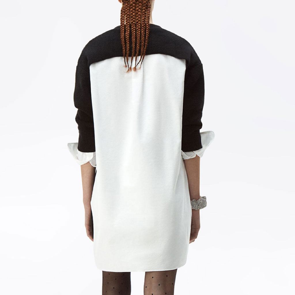 Unique Patchwork Button Down V Neck Ribbed Knit Cardigan - Black
