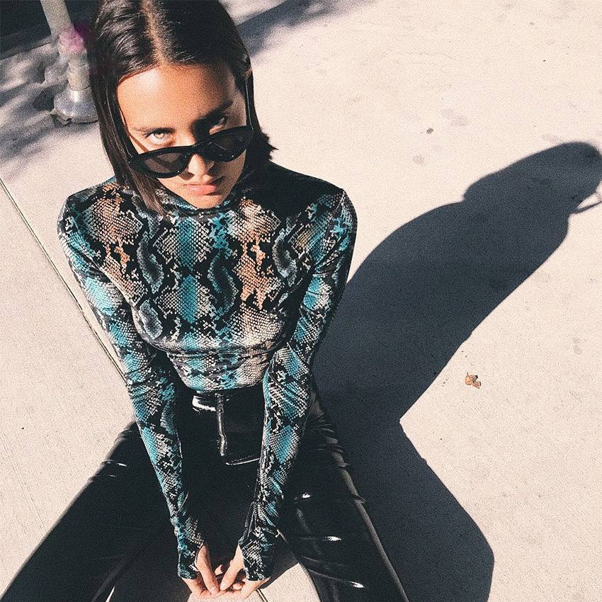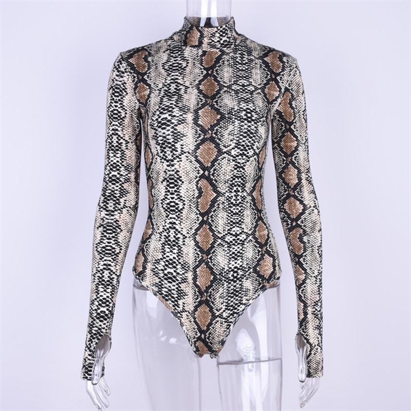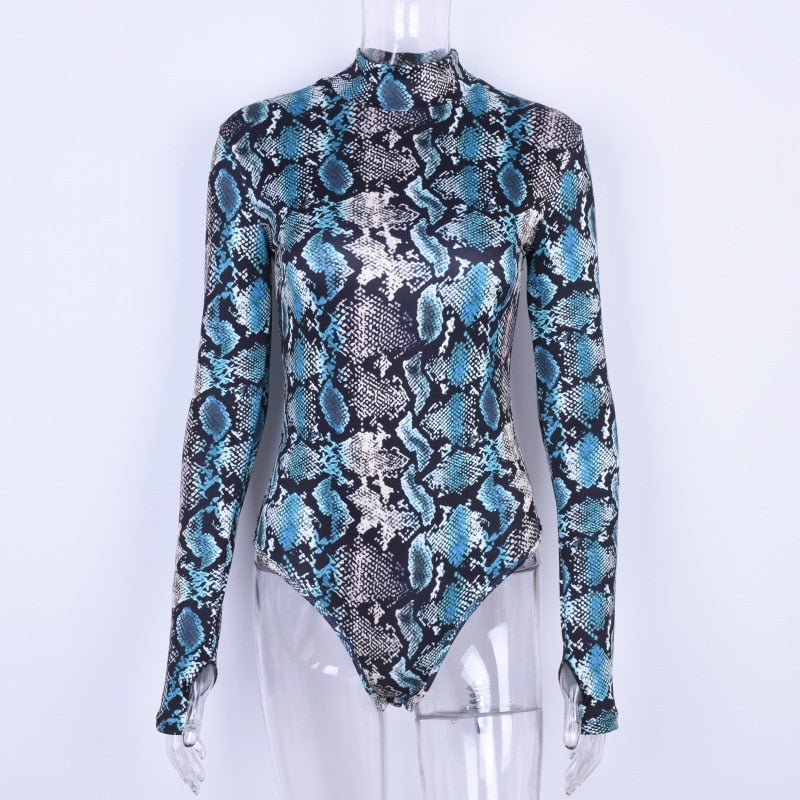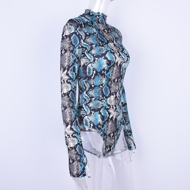 Polyester Cotton Snake Pattern Turtleneck Long Sleeve Bodysuit