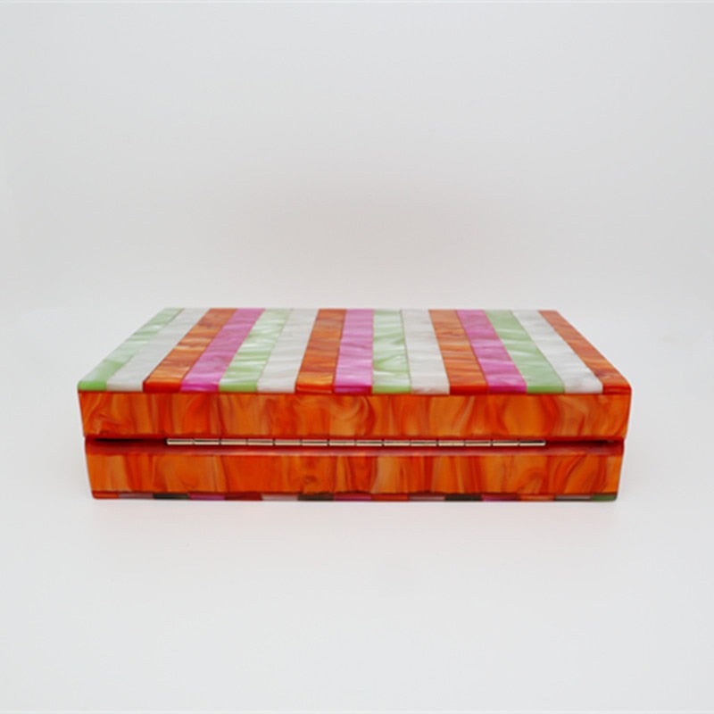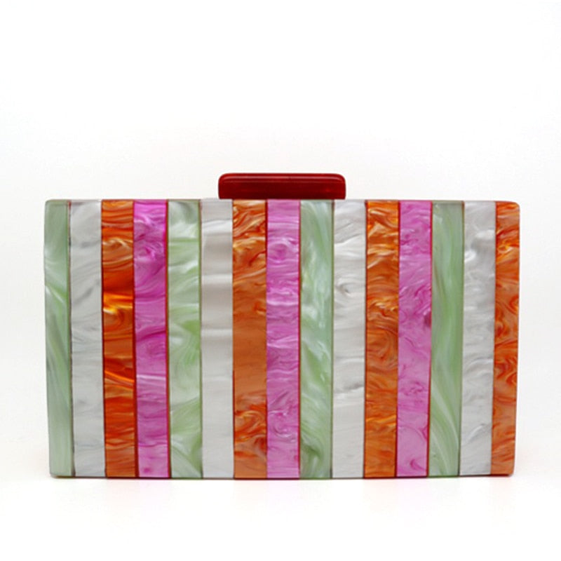 This Was In Blue Clutch is the perfect accessory for any outfit. Crafted from high-grade acrylic material, it is durable yet lightweight and features a striped and colorful design. Show off your style with this stylish and sophisticated clutch!