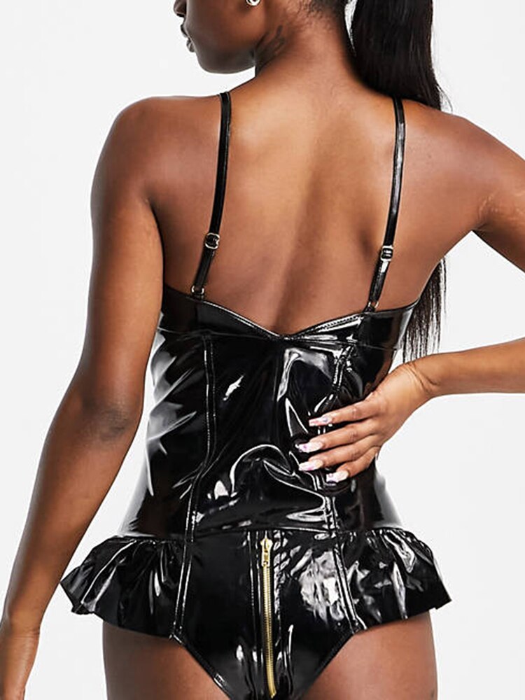 The We're Beautiful Now Bodysuit is perfect for a night out. Crafted from PU leather and featuring spaghetti straps and ruffles on the bottom, this bodysuit is sure to make a statement. Put your fashion-forward foot forward in this stylish option.