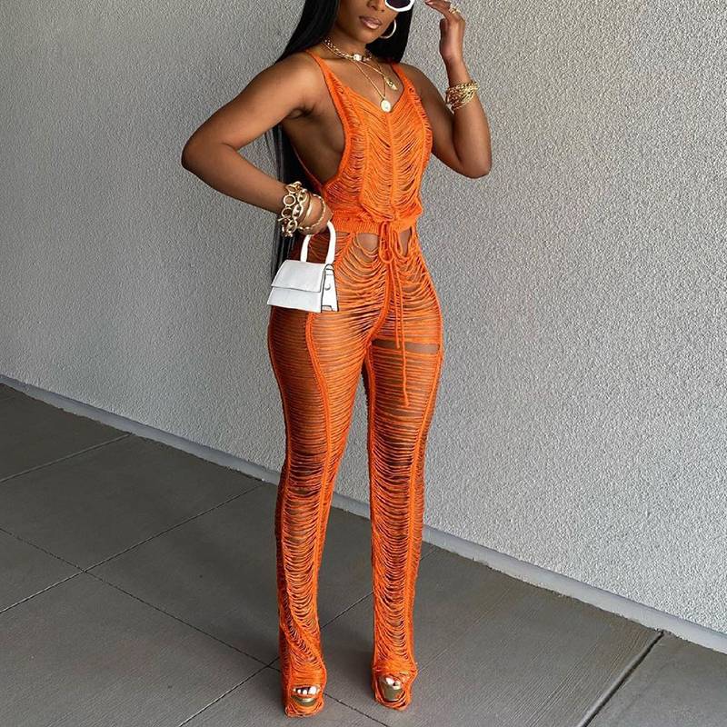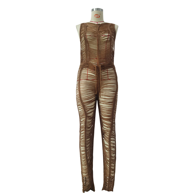 Mono Color Sleeveless Full Hollow Out Style Jumpsuit Made From Polyester Material
