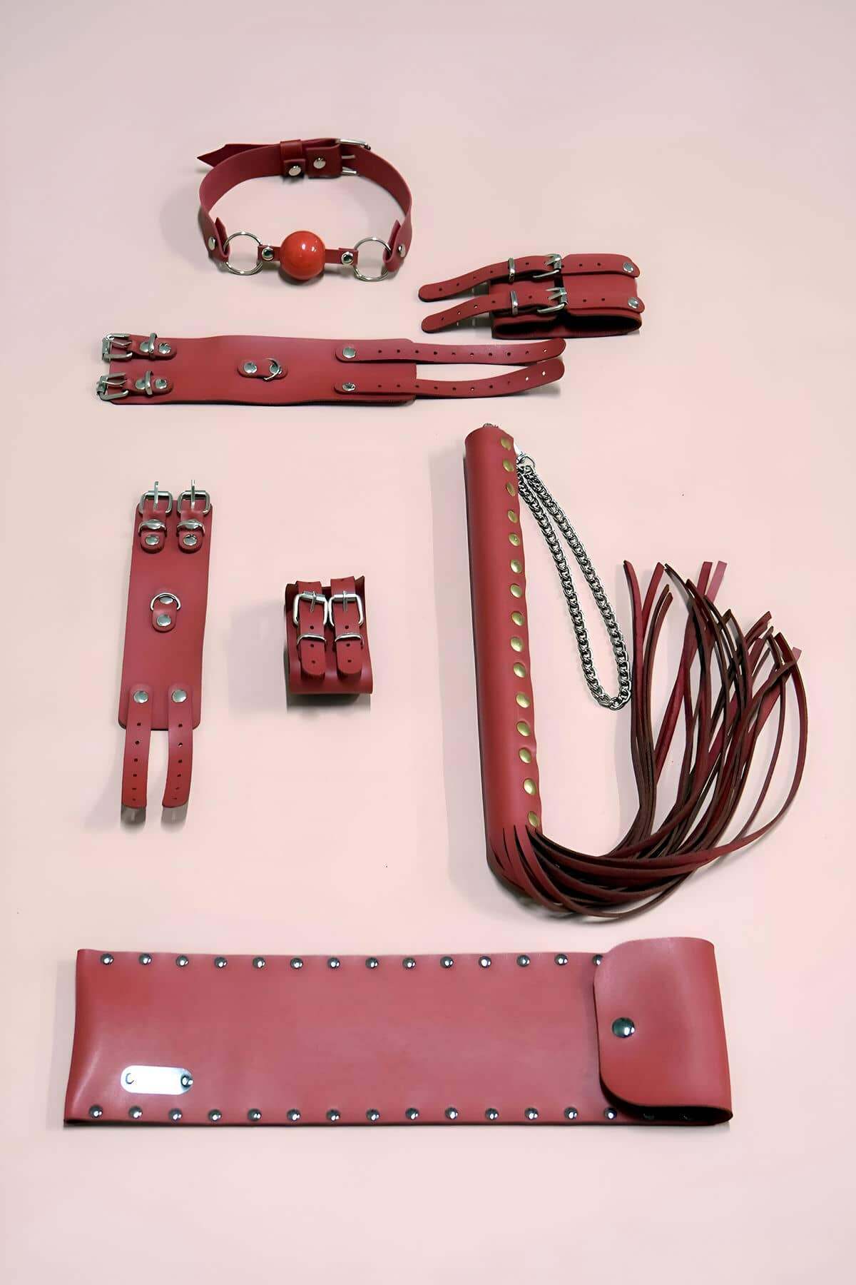 Whip Handcuff Set 4 Piece Set, Hand - Foot Handcuffs, Whip, Mouth Ball