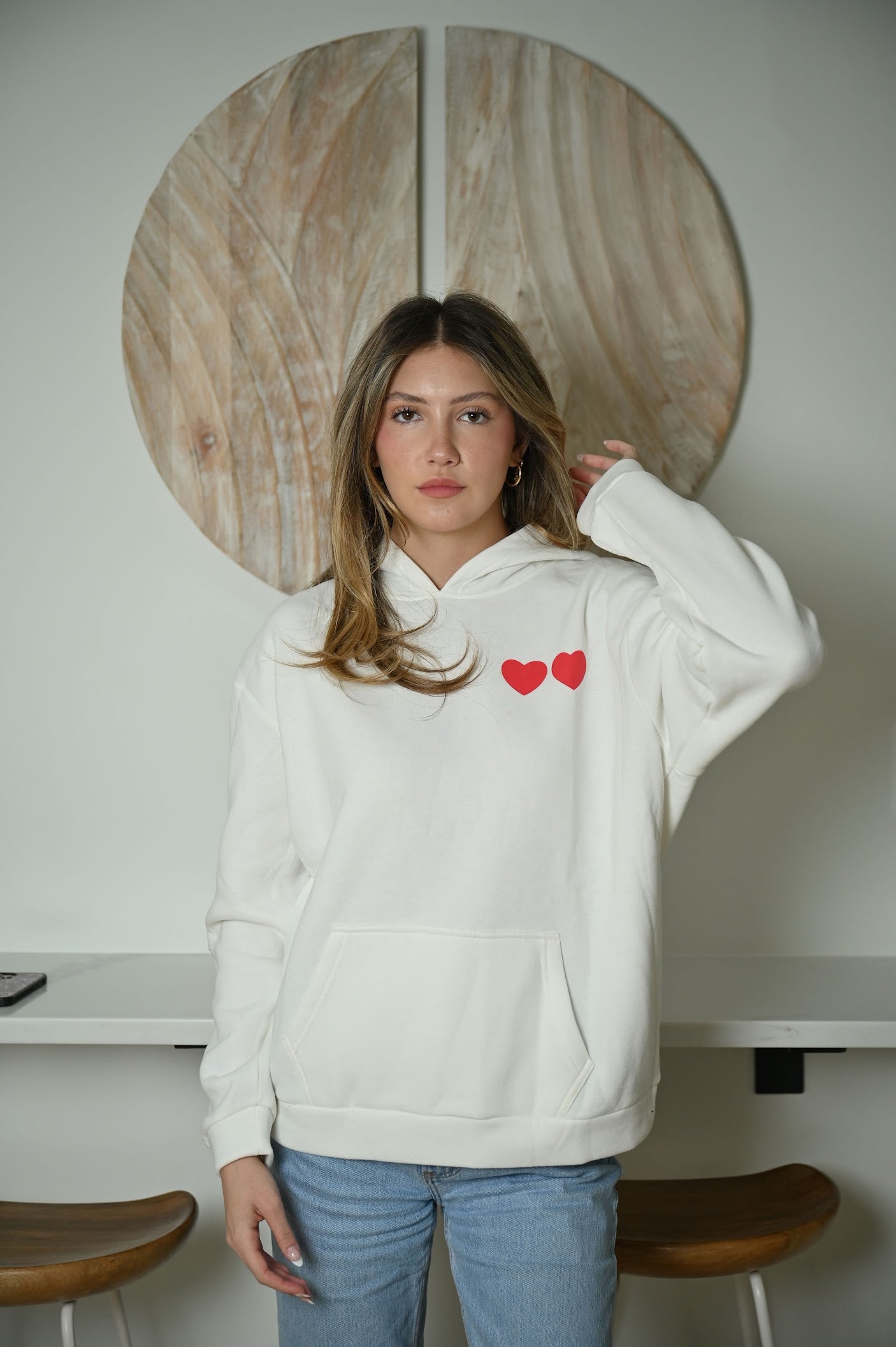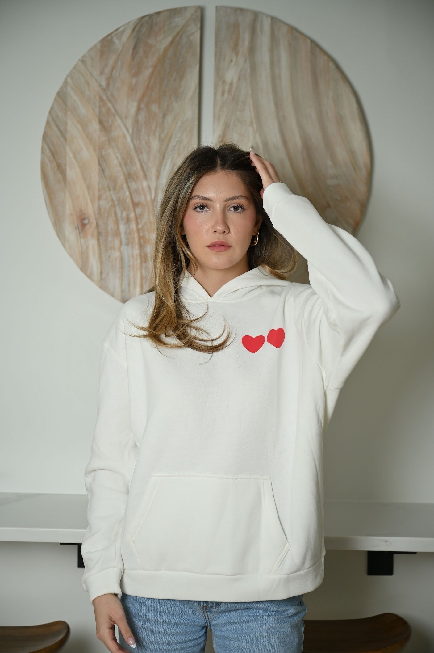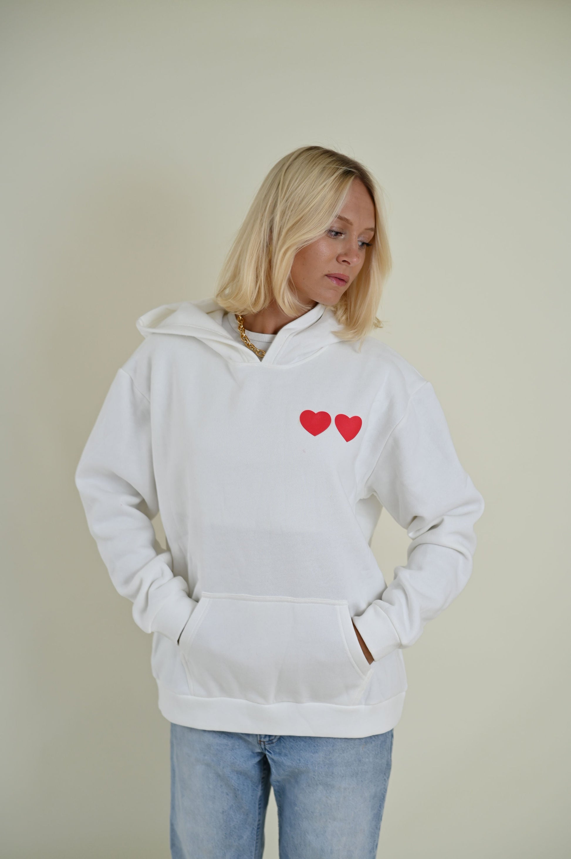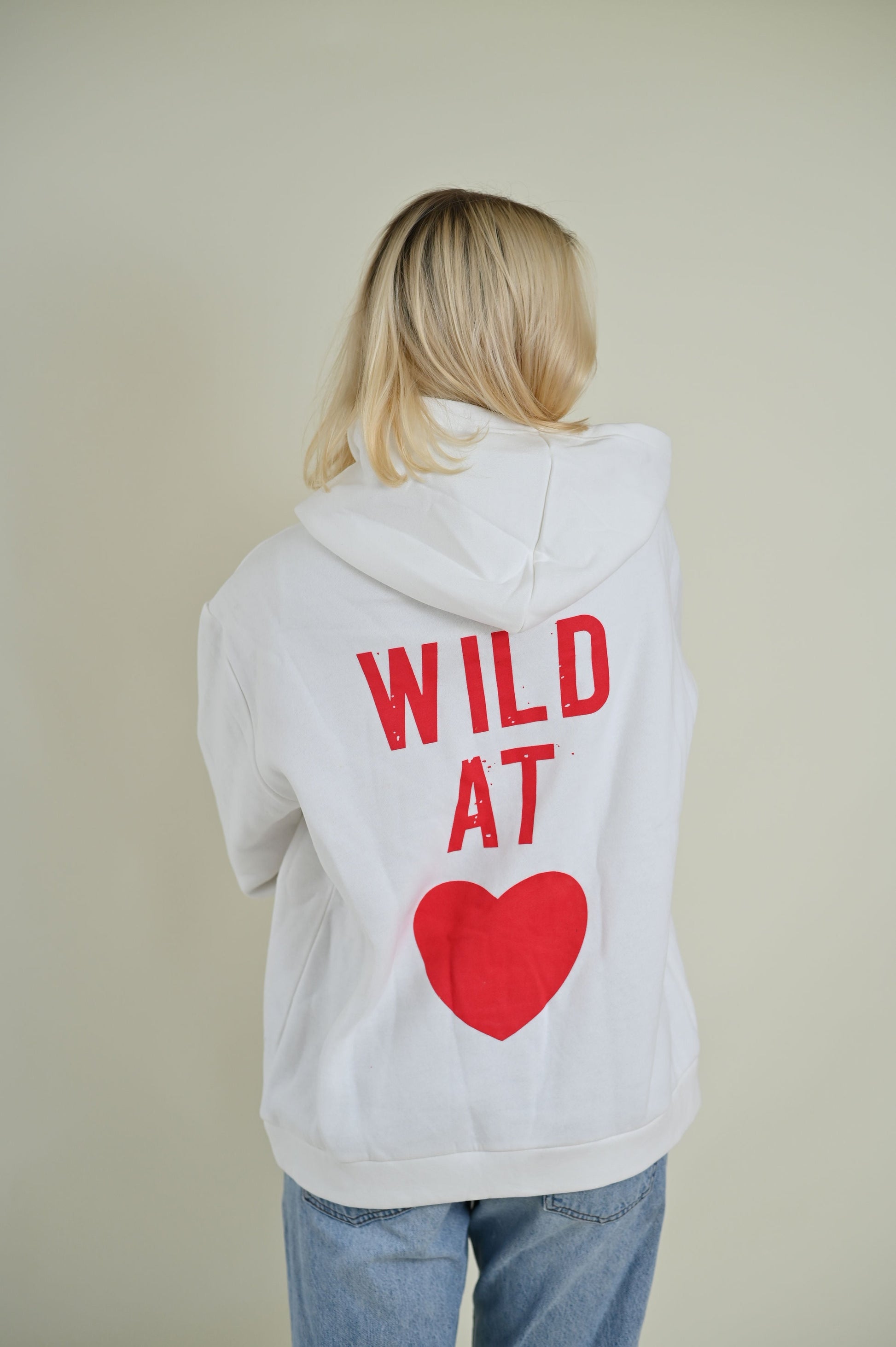 Introducing the Wild Hoodie, the perfect combination of style and comfort. Made with a heart design in bold red and a classic white color, this hoodie is sure to make a statement. Stay warm and fashionable with this must-have piece.