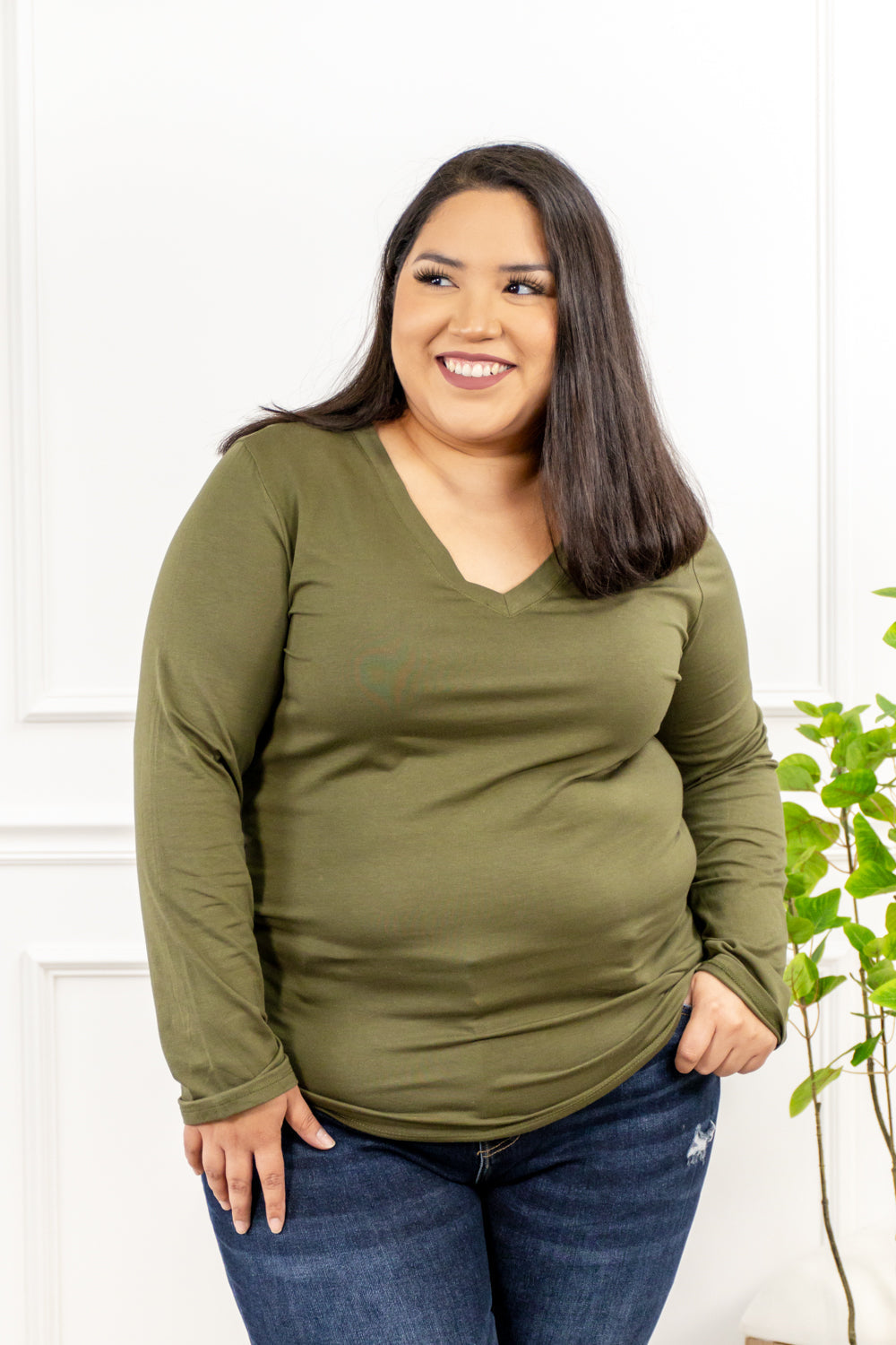 Willow Lane V-Neck Long Sleeve Fitted Top