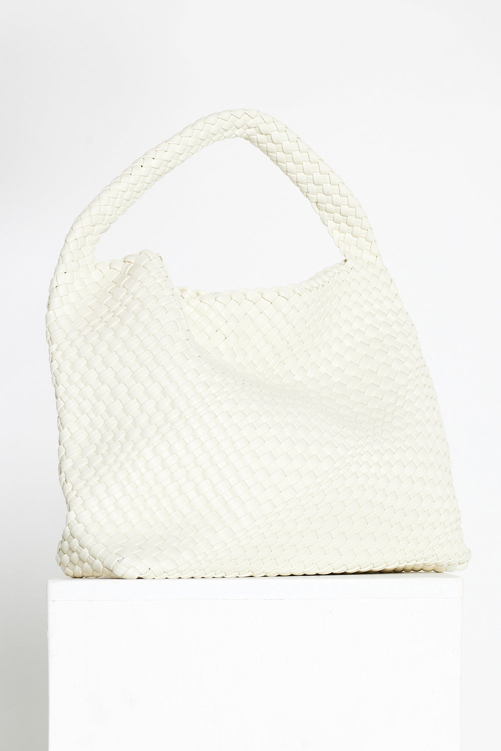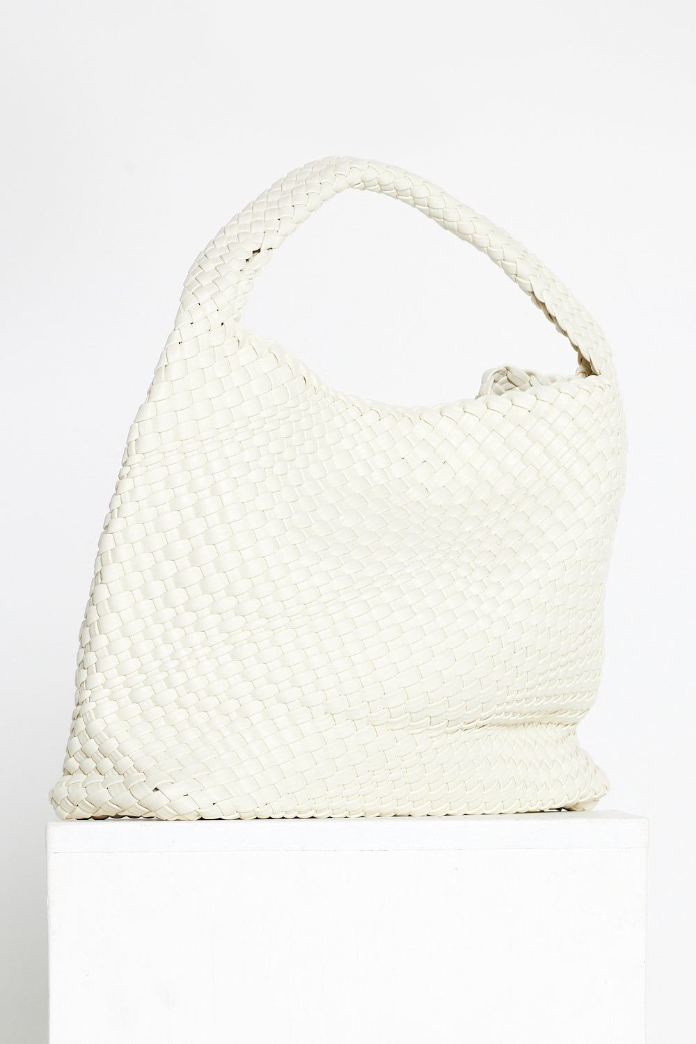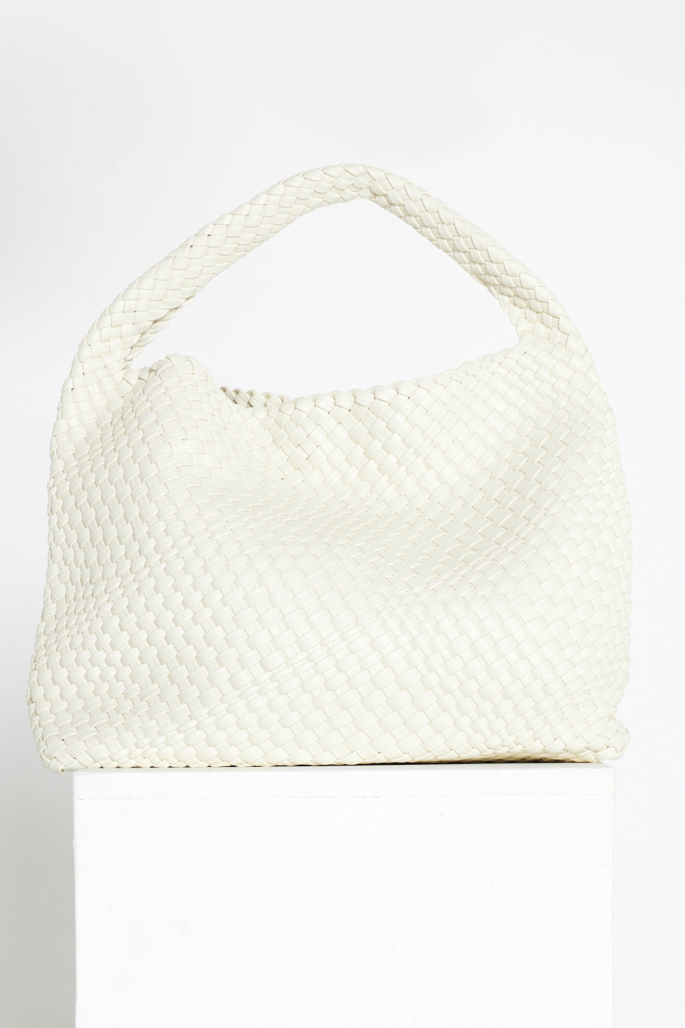 Woven Slouch Bag & Clutch - Rice White
