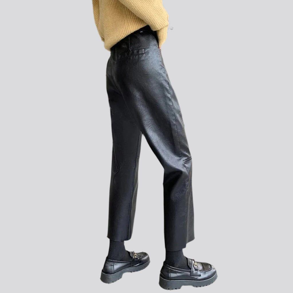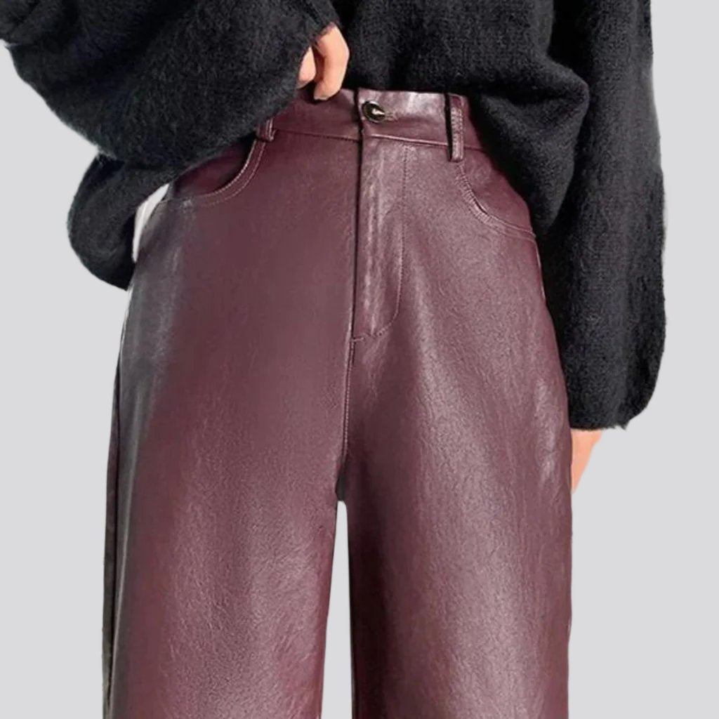 The Y2K trend offers a unique look and these wide-leg jeans are the perfect way to express your individual vibe. The pu-coated coating adds a sheen to the denim fabric. giving these pants a chic look. The short length adds to the modernity of the jeans. making them a fashionable choice for any occasion.