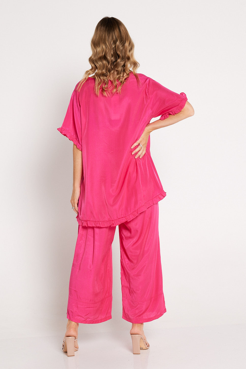 This silhouette is always a popular one, and Cotton Village has just created their own take on it. In a silky hot pink, we love this one paired with the matching pants for a statement special occasion look.